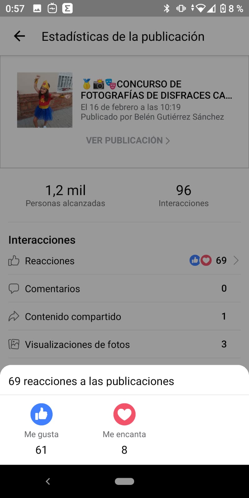 - Categoría individual infantil, premio bicicleta: fotografía nº 024 con 387 Me gustas para Daniela Mármol Guillén.