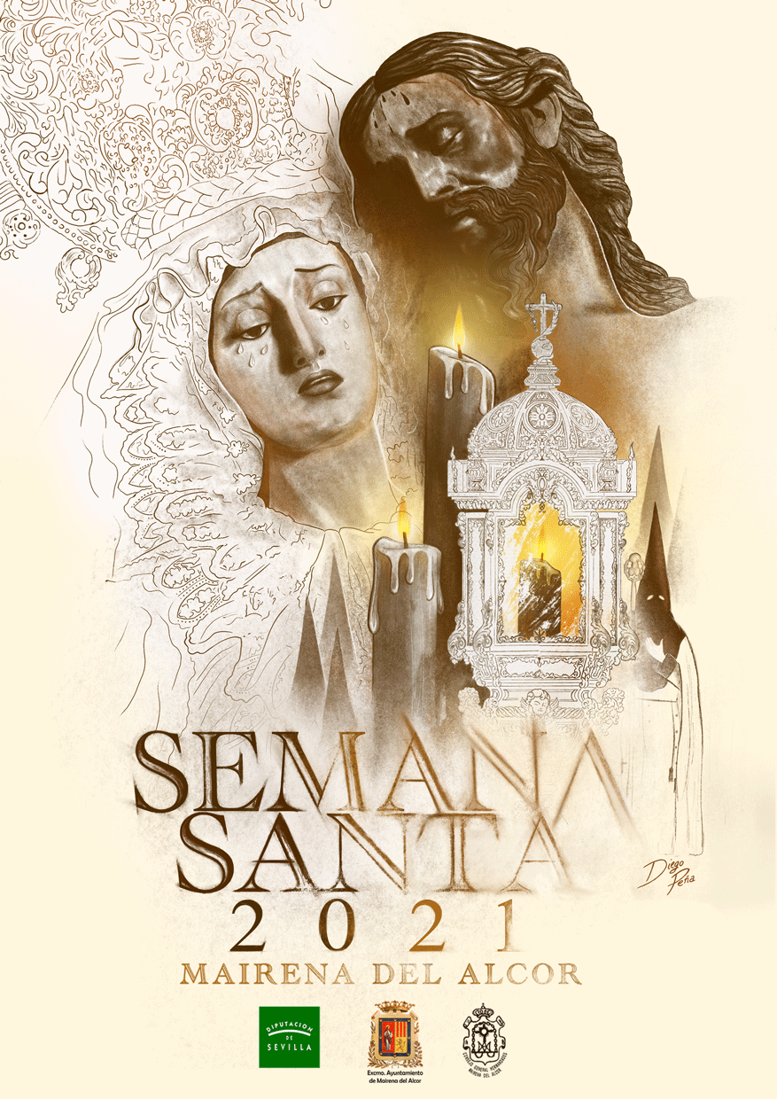 El teatro municipal Calixto Sánchez acogió la presentación del cartel de Semana Santa 2021, obra del mairenero Diego Peña Madroñal, en la mañana del domingo 28 de febrero.