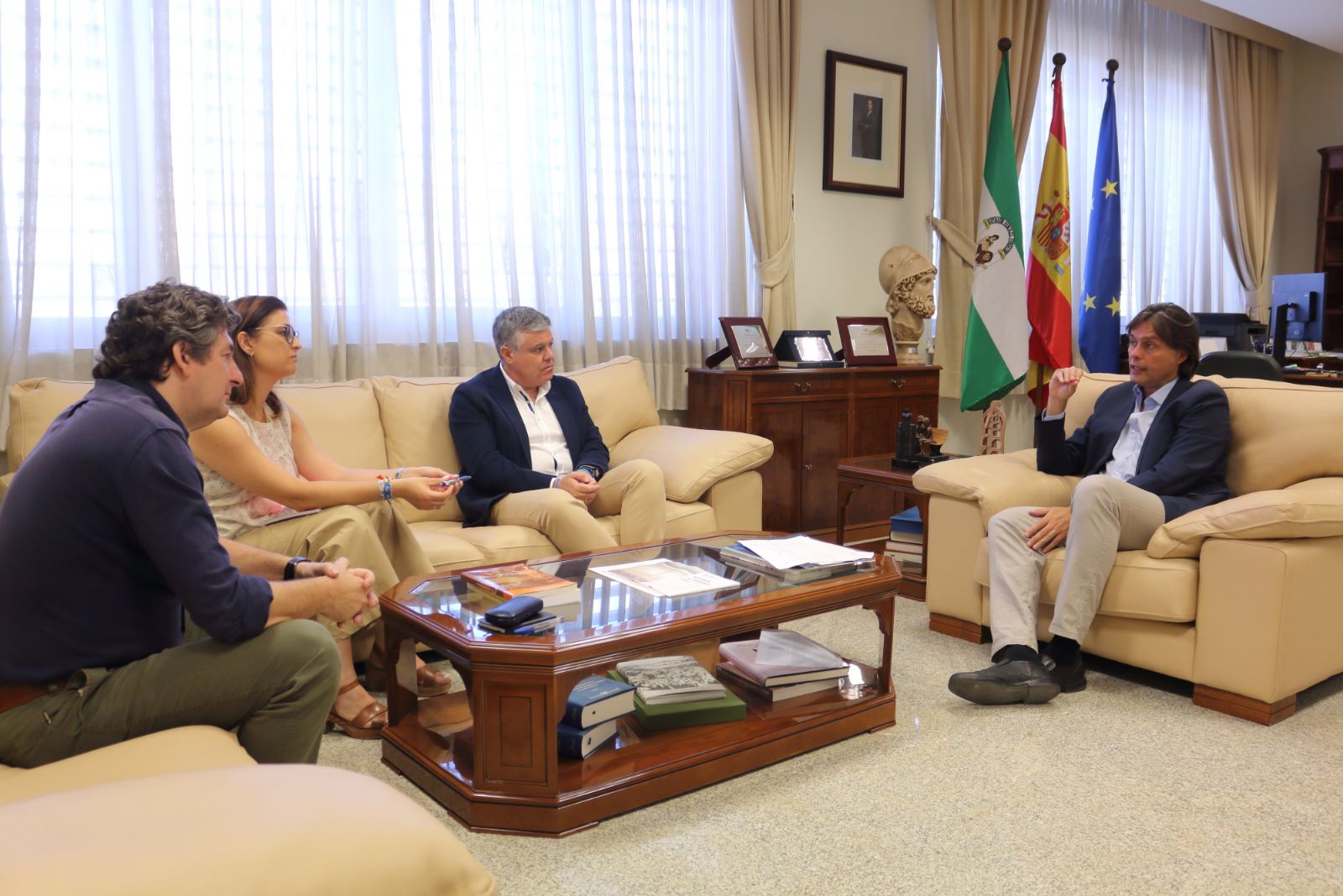 El alcalde de Mairena del Alcor, Juanma López, y la concejala de Educación y Flamenco, Gloria Guillén, han mantenido una primera toma de contacto con el rector de la Universidad Pablo de Olavide, Francisco Oliva, y el profesor de Máster y Director de Cursos, Ginés Bustos, a fin de entablar relaciones de colaboración entre el Ayuntamiento y la UPO en distintos ámbitos educativos.