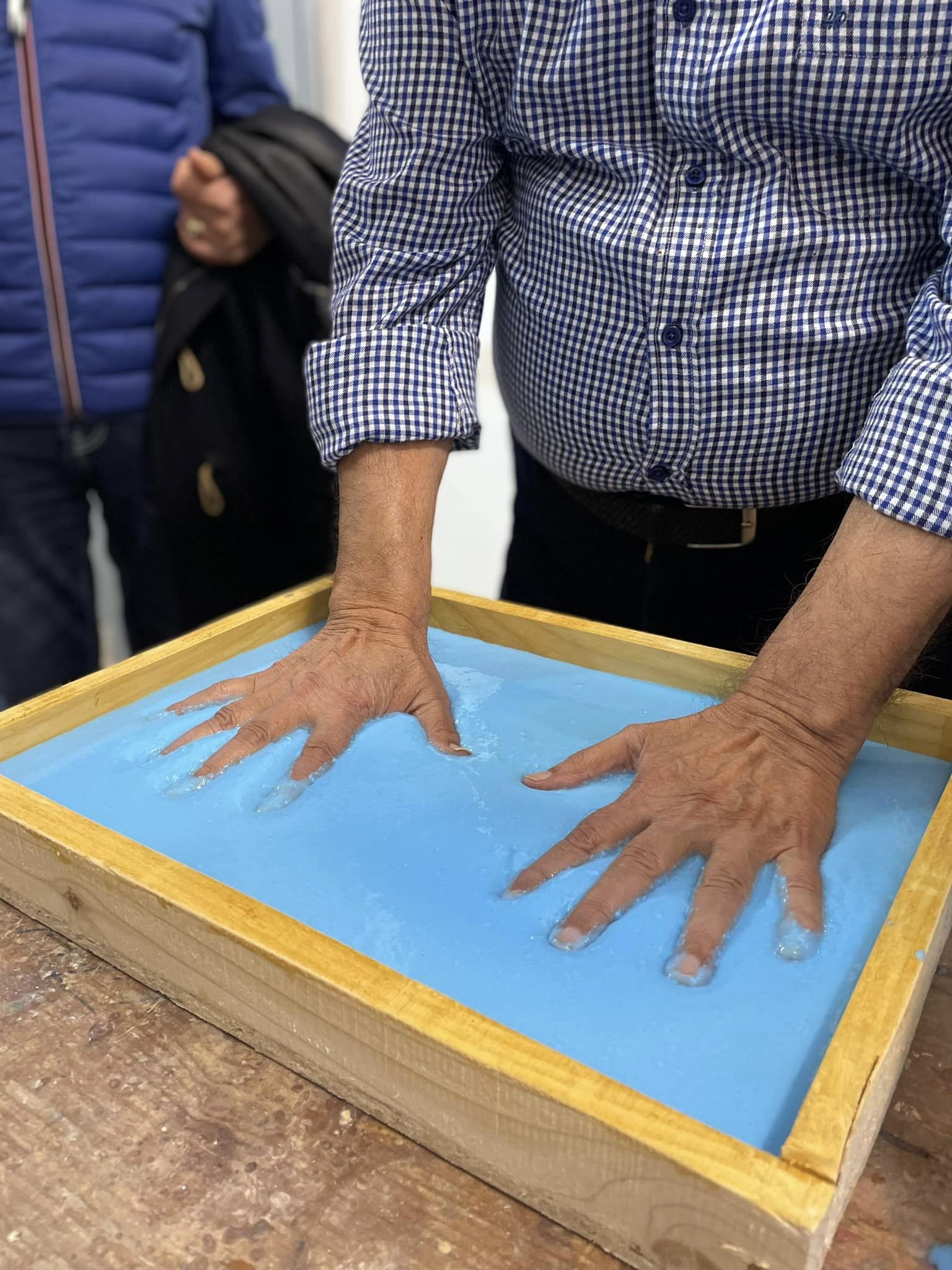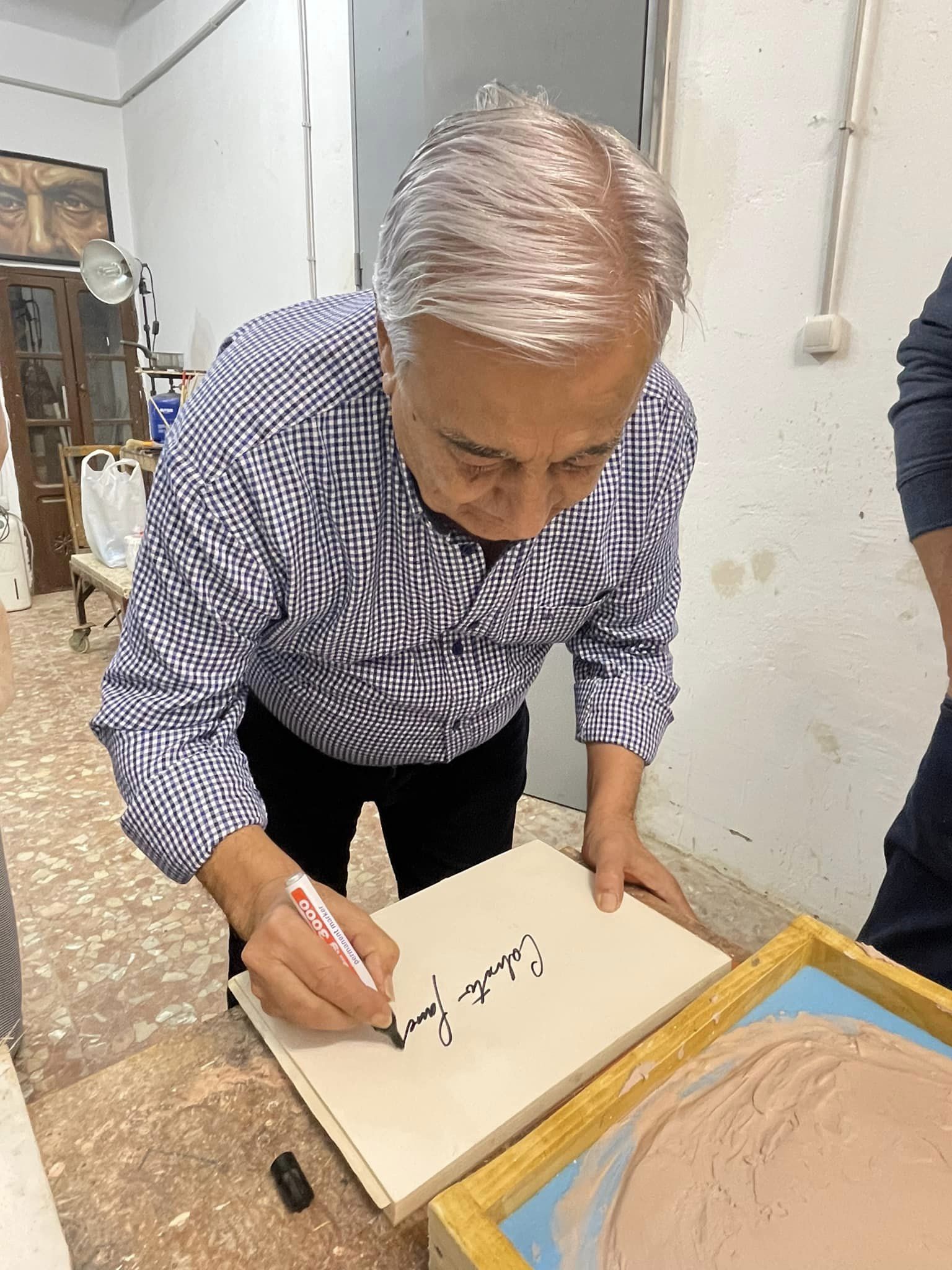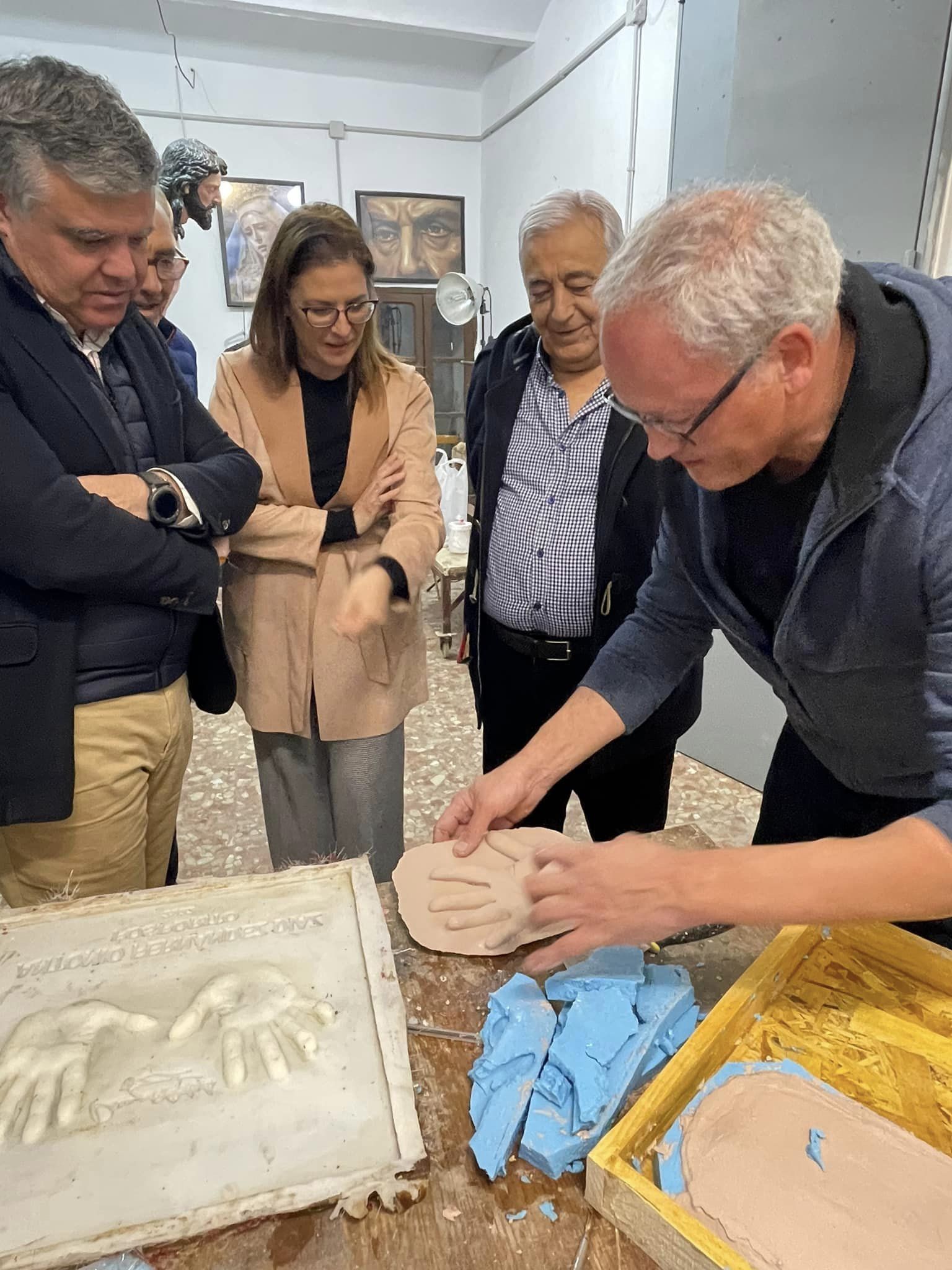 Última actividad en el marco de Noviembre Flamenco con las huellas de las manos del gran cantaor mairenero Calixto Sánchez, medalla de la Villa de Mairena, de numerosos premios y reconocimientos nacionales e internacionales, realizadas por el artista Ventura Gómez, que servirán de molde para la loza de bronce que se ubicará en el paseo de la Feria Antigua de Mairena del Alcor, el mismo lugar donde Calixto tuvo noches de gloria con su cante.