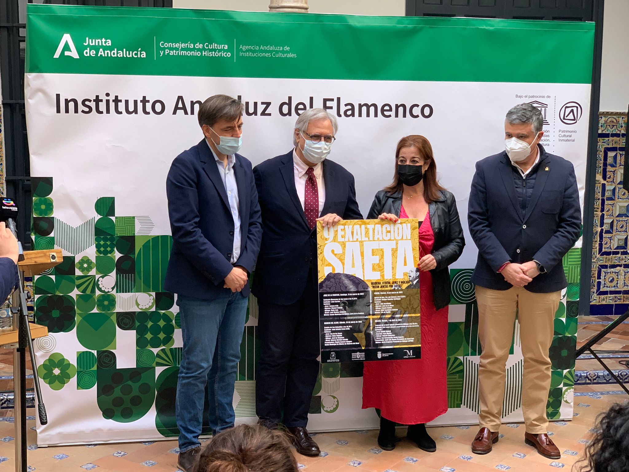 El alcalde de Mairena del Alcor, Juanma López, y la delegada de Flamenco, Gloria Guillén, han asistido a la presentación de la IX Exaltación de la Saeta ‘Jerez, Utrera, Mairena y Málaga rezan juntas por saetas’, esta mañana en la sede del Instituto Andaluz del Flamenco. Una Exaltación que organizan conjuntamente los ayuntamientos de las cuatro ciudades andaluzas.