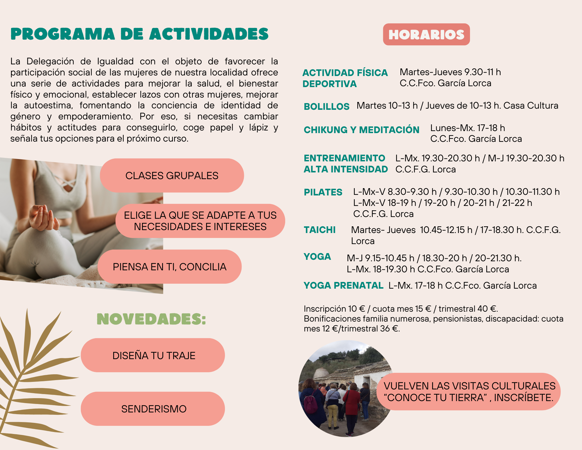 Se ofertan 600 plazas y se trata de una programación elaborada en base a las demandas vecinales. Como novedad, esta temporada se ponen en marcha unos talleres que apuestan por la conciliación familiar, entre ellos: yoga prenatal, chi kung y meditación, actividad física deportiva, senderismo y diseña tu traje.