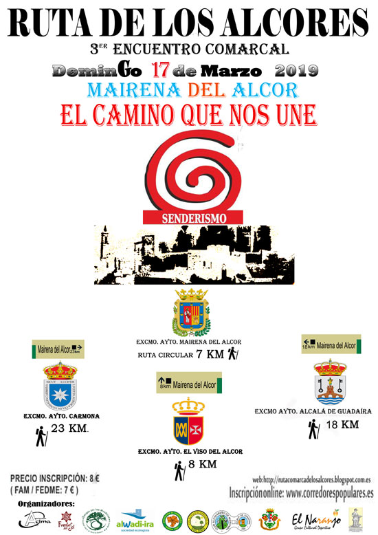 ▶ Travesía El Viso del Alcor – Mairena del Alcor: 8 kilómetros con salida a las 12.00 horas a puertas del Ayuntamiento (Plaza Sacristán Guerrero).