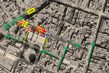 Corte al tráfico rodado desde la confluencia de la calle Miguel Hernández con Velarde, dirección camino de las Minas