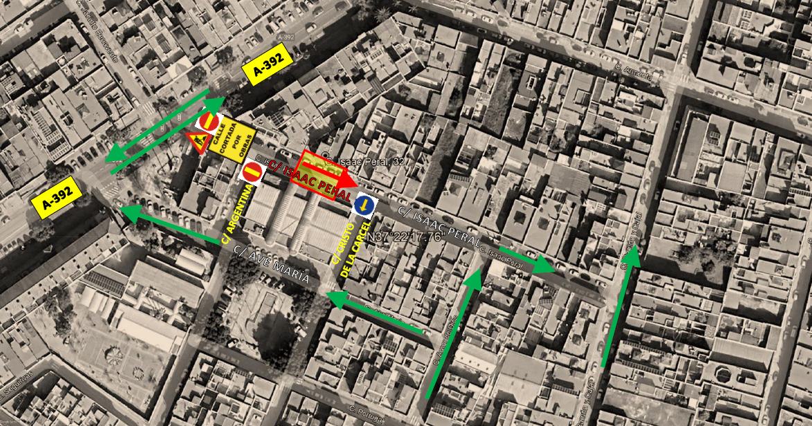 La Policía Local de Mairena del Alcor informa del corte parcial al tráfico rodado en la calle Isaac Peral, necesario para descubrir la acometida de abastecimiento de Emasesa que discurre por la calzada entre la A-392 y la calle Cristo de la Cárcel.