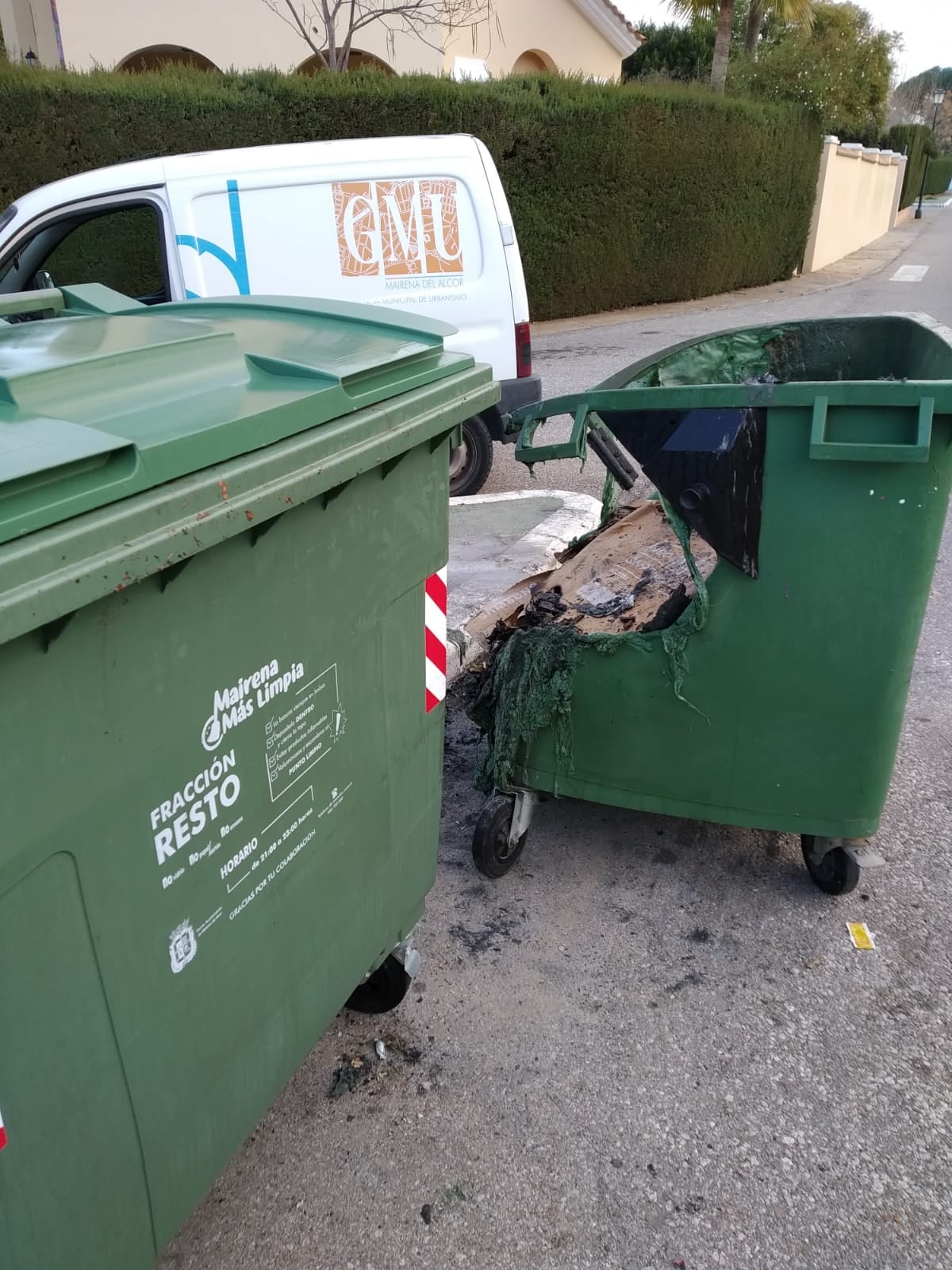 El vandalismo ha acabado con dos contenedores de basura en la localidad, según confirma el delegado municipal de Coordinación de Barrios, José Romero, uno en la calle Fernán Caballero y otro en la urbanización San Fernando.