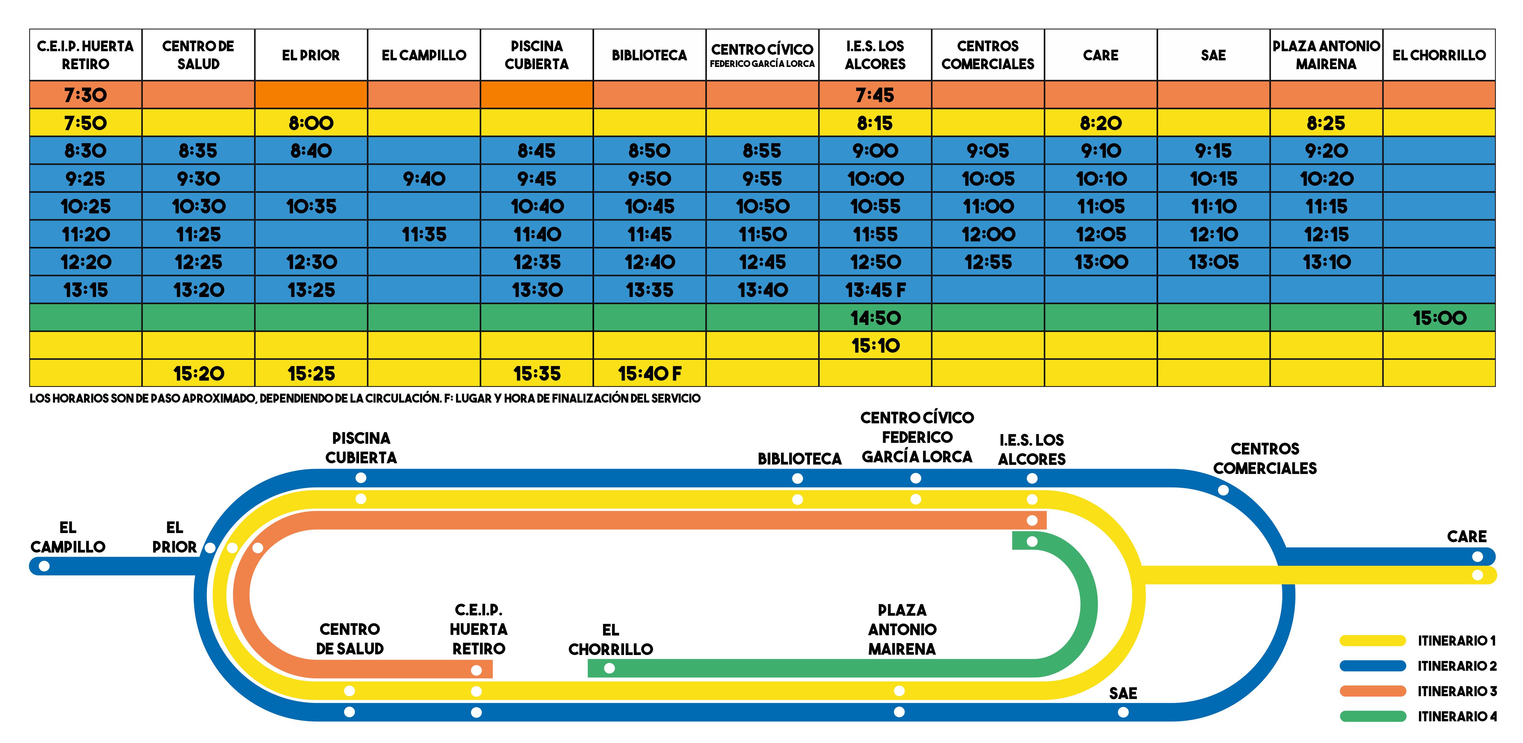 La frecuencia de paso por el Centro de Alta Resolución de Especialidades Médicas (CARE) alcanza 6 paradas en horario de mañana: 8.20, 9.10, 10.10, 11.05, 12.05 y 13.00 horas.