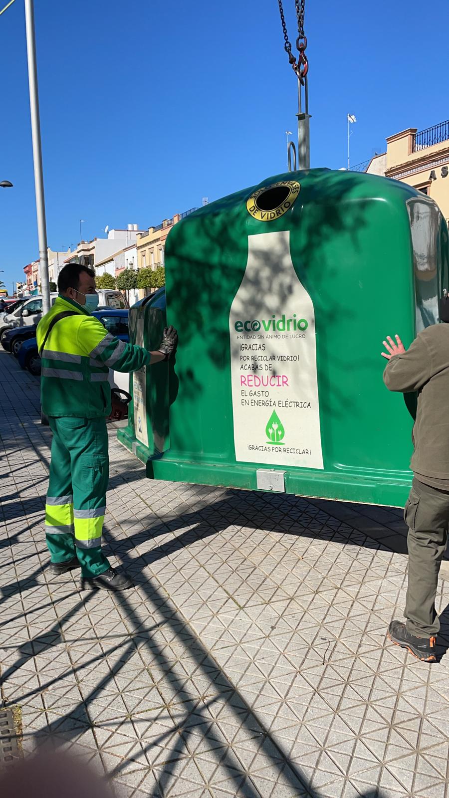 La Mancomunidad de Los Alcores repone hoy 5 nuevos contenedores de vidrio a petición del Ayuntamiento para sustituir los dañados y fomentar el reciclaje de envases de vidrio.