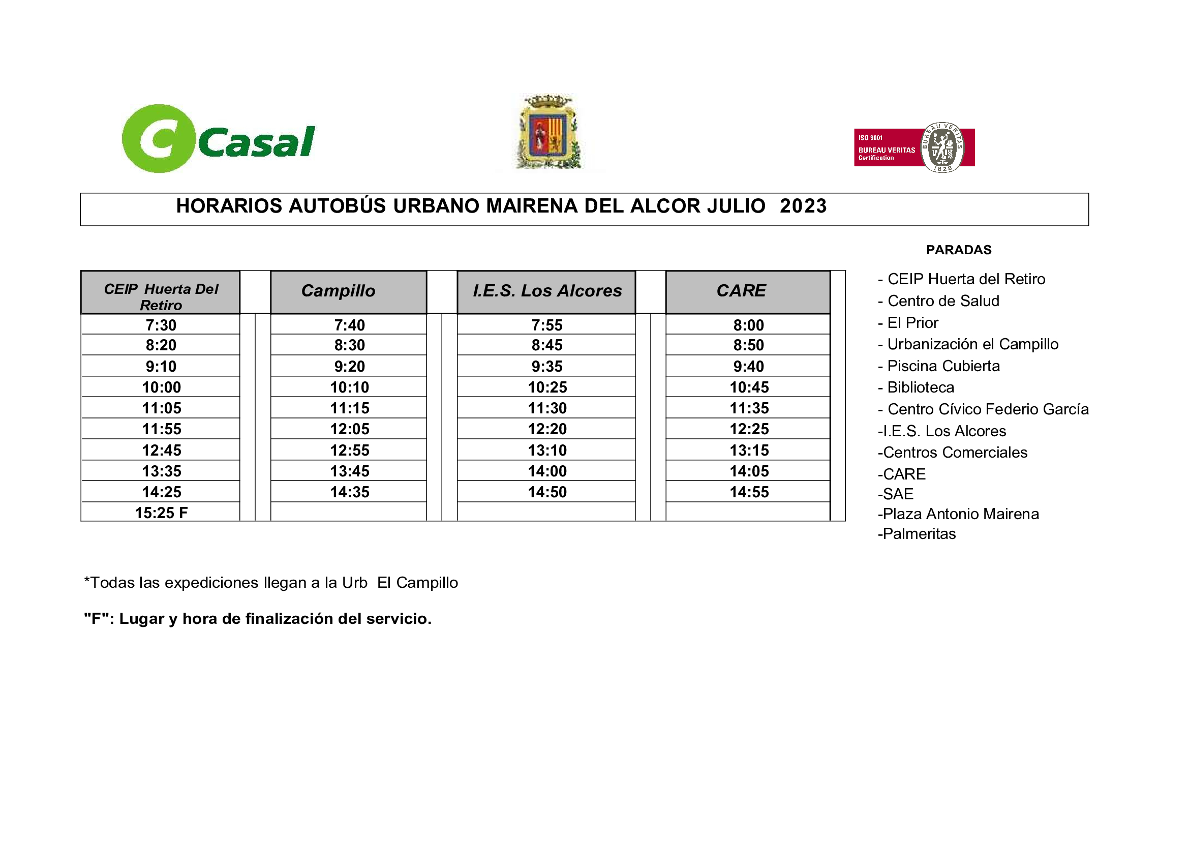 El sábado 1 de julio entra en vigor el horario de verano en la línea de autobús urbano.