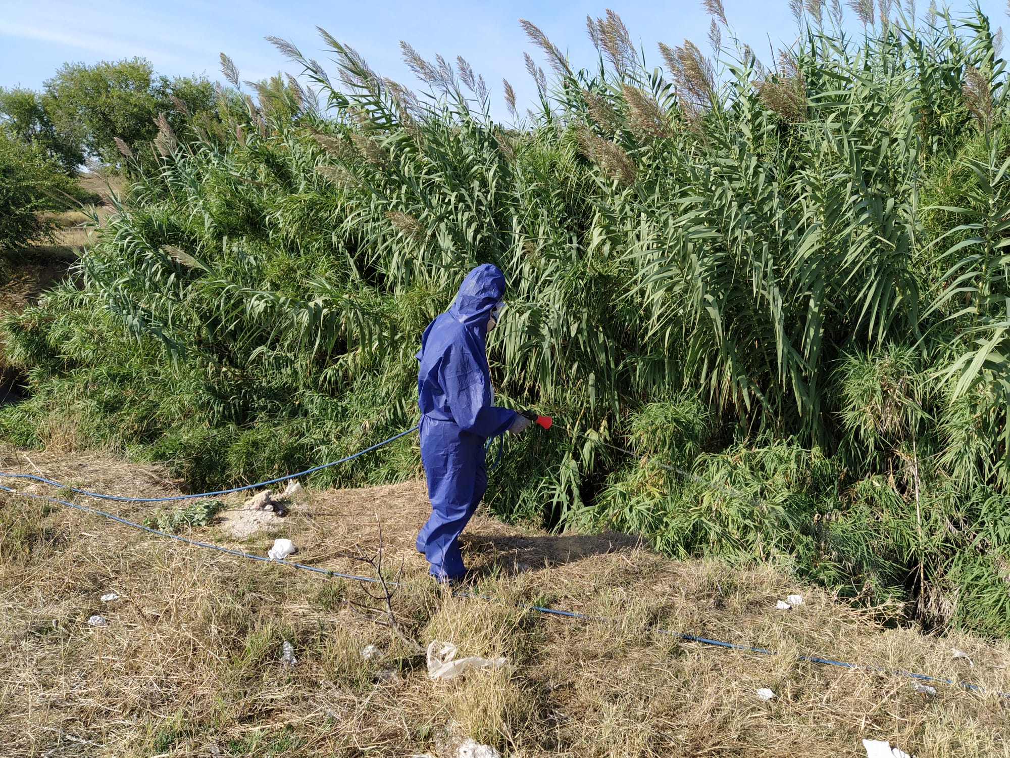 El Ayuntamiento de Mairena del Alcor realiza un nuevo tratamiento contra el mosquito responsable de la fiebre del Nilo en el entorno del arroyo de los Molinos, siguiendo el protocolo de actuación aprobado de mano de la Consejería de Salud y con el asesoramiento de técnicos de salud ambiental.