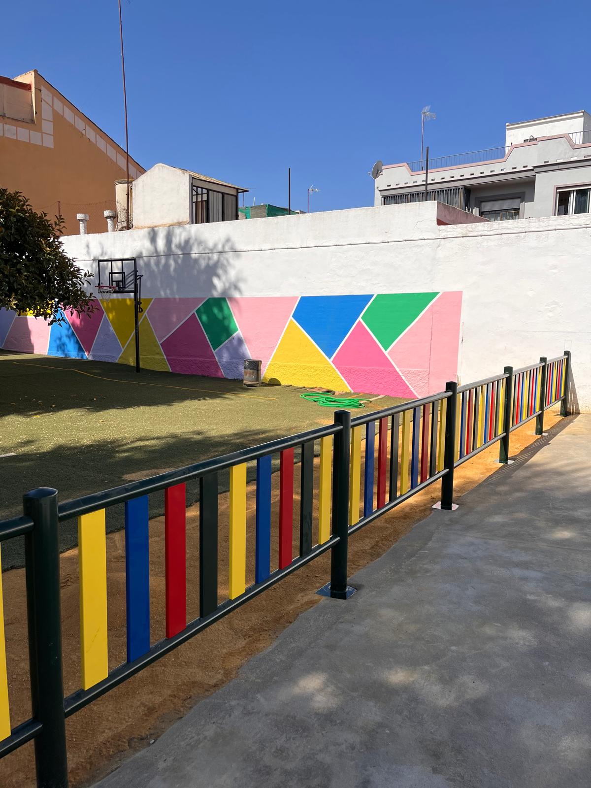 El trabajo coordinado de las delegaciones de Servicios y Empleo ha permitido llevar a cabo las obras de mejora en el patio del colegio Manuel Romero Arregui. Los participantes en el Programa de Empleo y Formación Mairena Ciudad Sostenible II han sido los encargados de asegurar las vallas con la cimentación de los postes, la creación de una rampa hasta la pista y extender el albero.