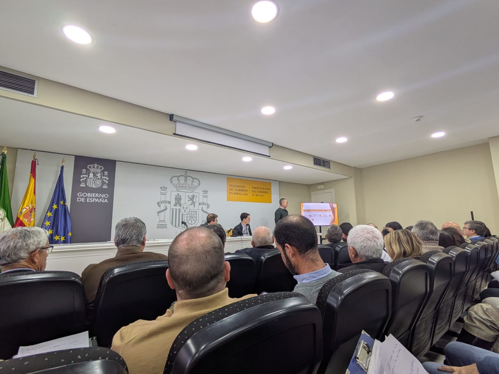 El concejal de Servicios, José Romero, y la técnica de Medio Ambiente, María Jesús Díaz, han participado esta mañana en la reunión informativa celebrada en la sede de la Subdelegación del Gobierno en la Plaza de España para conocer de primera mano la aplicación en la provincia de Sevilla del Acuerdo del Consejo de Ministros de 10 de febrero de 2026 y del Real Decreto-Ley 5/2026.