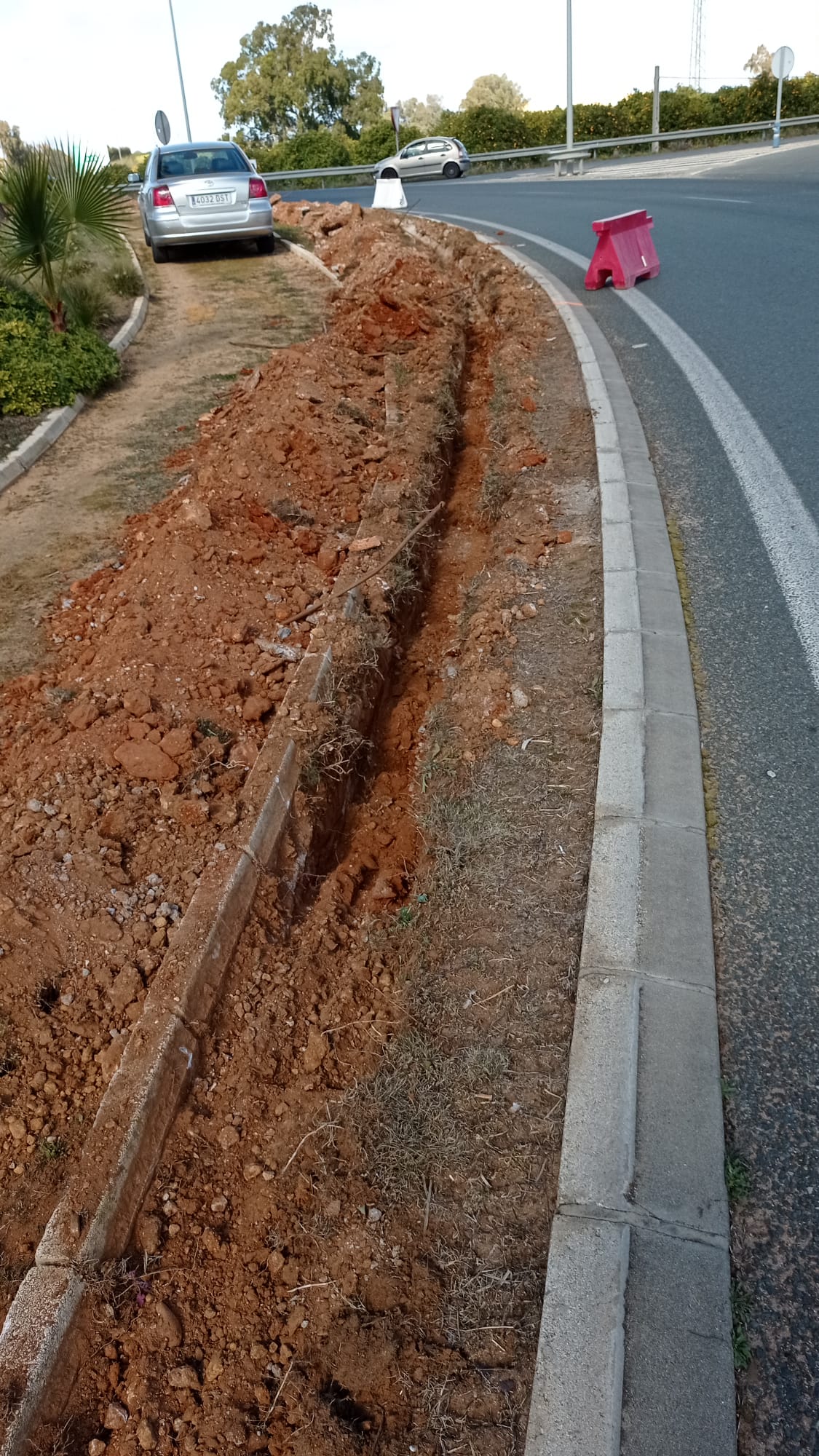 Trabajos de mantenimiento y mejora paisajística en la glorieta de entrada a Mairena del Alcor