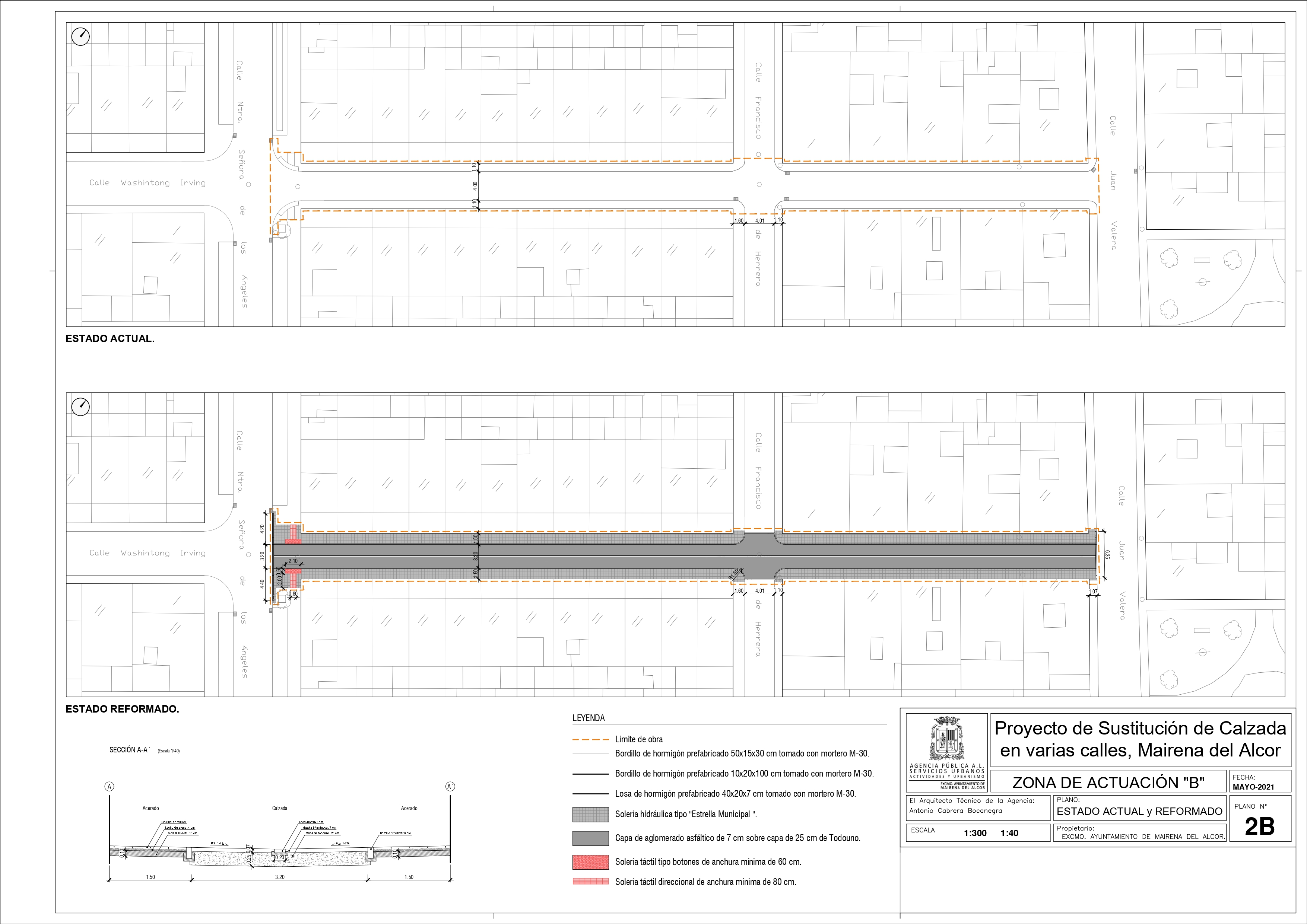 El proyecto asimismo contempla actuar en la calle Washington Irving del barrio Huerta Retiro. Navarro apunta que “en otra fase del Plan Municipal de Asfaltado se hicieron las calles de este barrio, quedando pendiente un tramo de Washington Irving que se ejecutará siguiendo el modelo de plataforma única, con acerado y calzada al mismo nivel, aumentando además el número de imbornales para la recogida de aguas pluviales”.