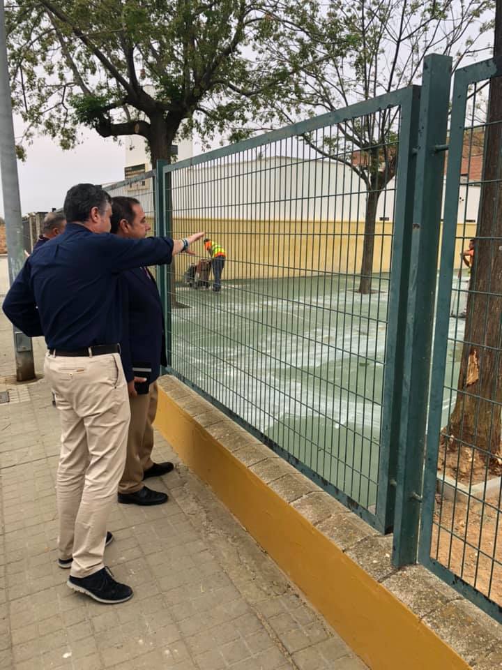 El Delegado del Gobierno de la Junta de Andalucía en Sevilla, Ricardo Sánchez, ha visitado esta mañana las inmediaciones de las obras sujetas al Plan de Fomento de Empleo Agrario y Rural 2018, PFOEA, anteriormente conocido como PER. Las obras, aprobadas en 2018, contemplan la dotación de nueva infraestructura en el Colegio de Educación Infantil y Primaria Huerta Retiro, la rehabilitación de tres plazas y la construcción de otra.